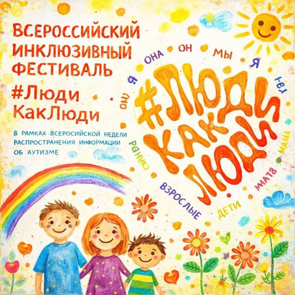 В период с 29 марта по 5 апреля 2026 года проводится юбилейный X Всероссийский инклюзивный фестиваль #ЛюдиКакЛюди, который проводится в рамках Всероссийской недели распространения информации об аутизме в очном, онлайн и смешанном форматах.